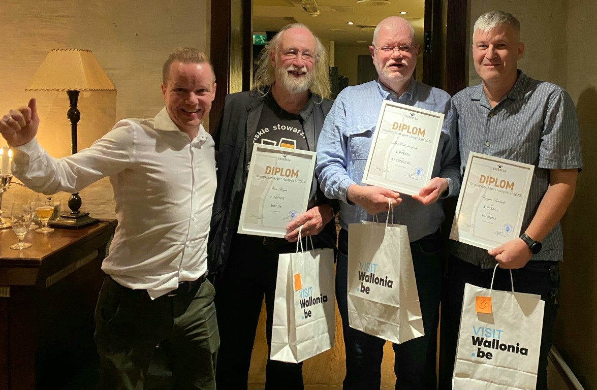 Under arrangementet delte vi også ut diplomene for høstens bryggekonkurranse med belgisk øl som tema. I tillegg til gavekort hos Strømmen hjemmebrygg, fikk vinnerne også en liten oppmerksomhet fra den belgiske ambassaden i Oslo. I tillegg var diplomene medunderskrevet av Belgias ambassadør til Norge!